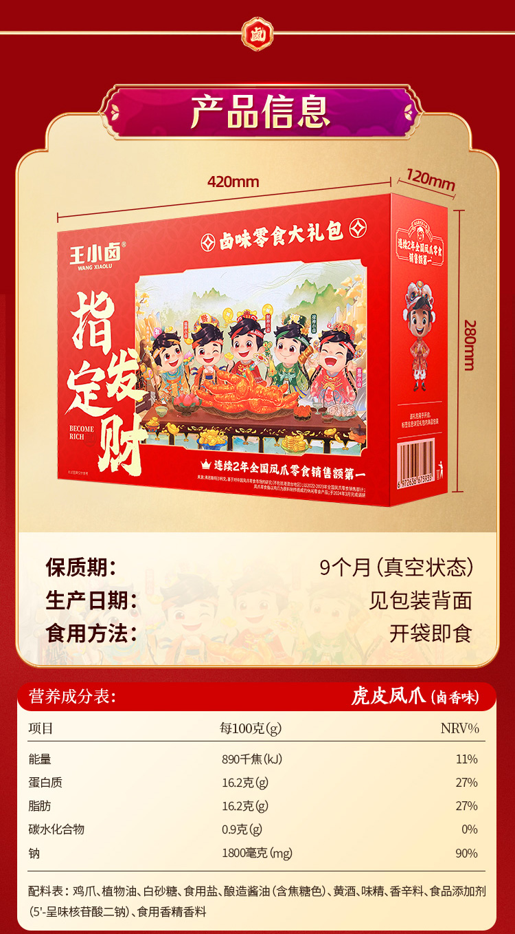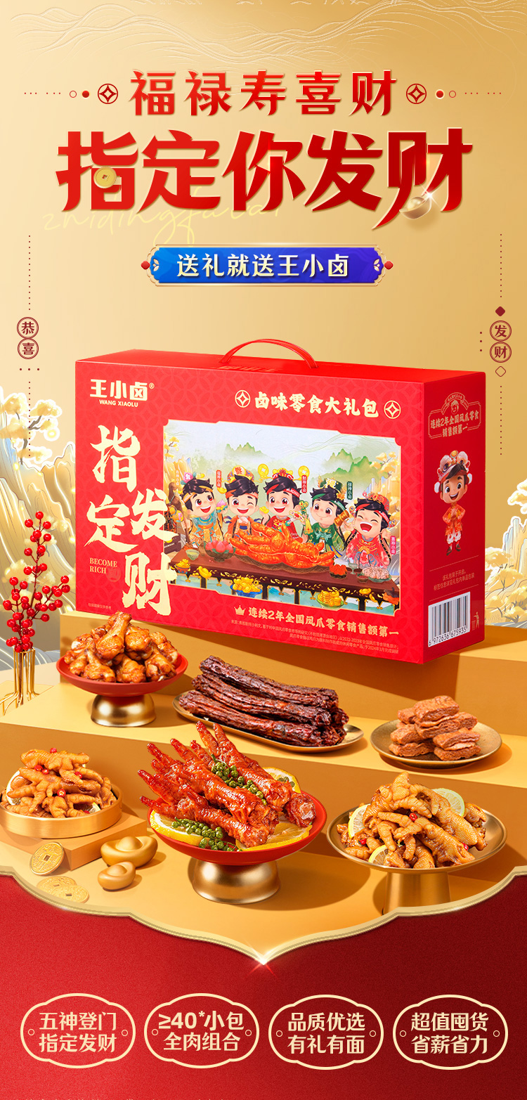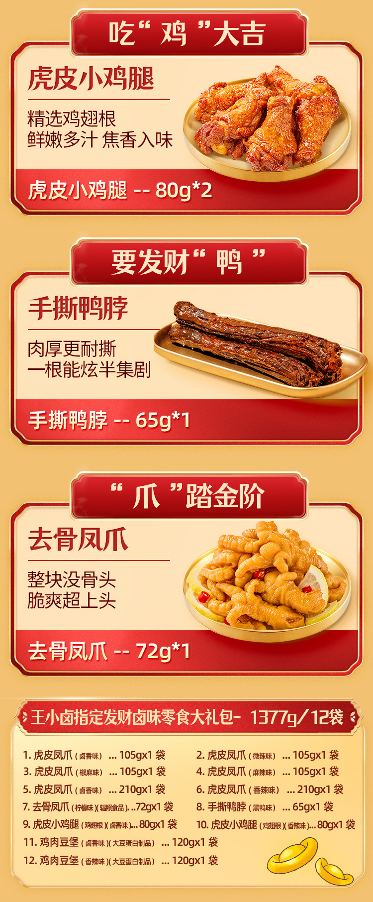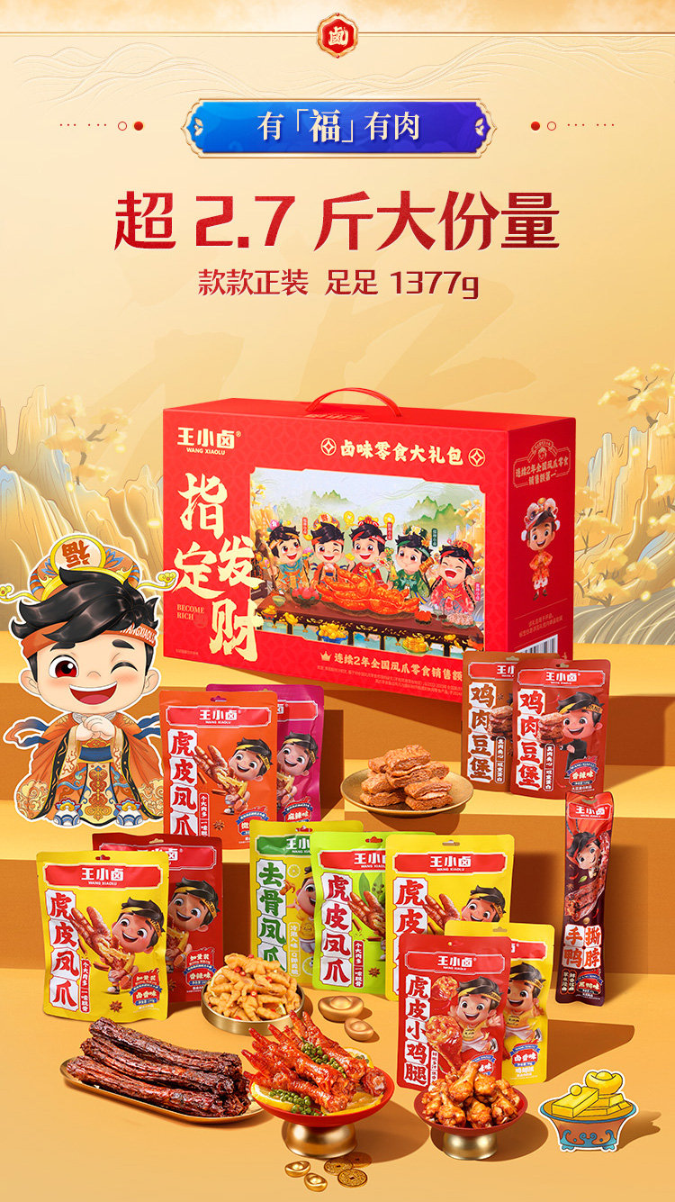 商品名称:王小卤指定发财卤味零食礼盒1377g