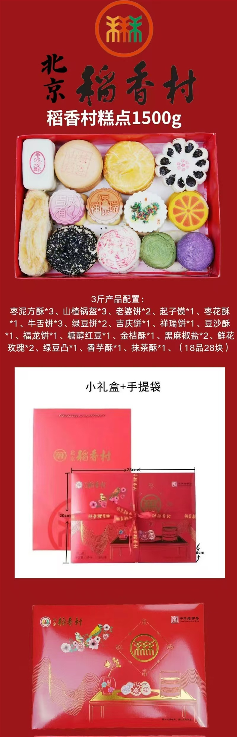 商品名称:【京东/顺丰配送】北京稻香村糕点礼盒1500g