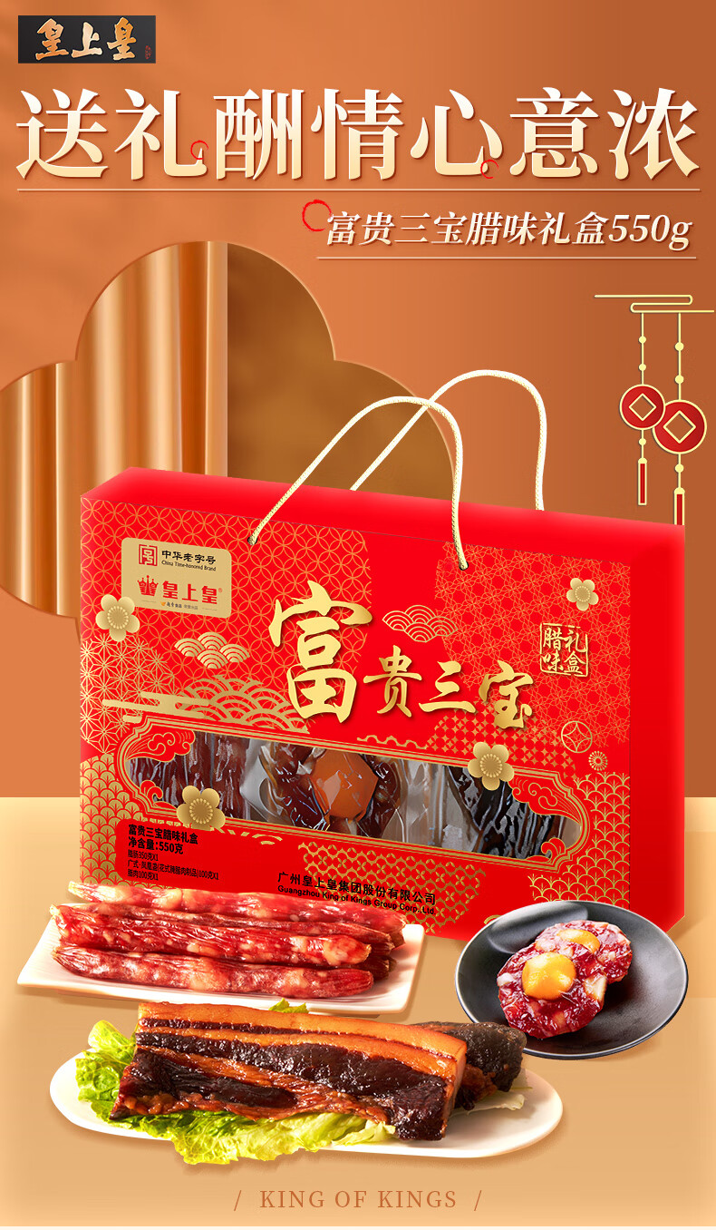 商品名称:【京东/德邦配送】皇上皇富贵三宝腊味礼盒550g