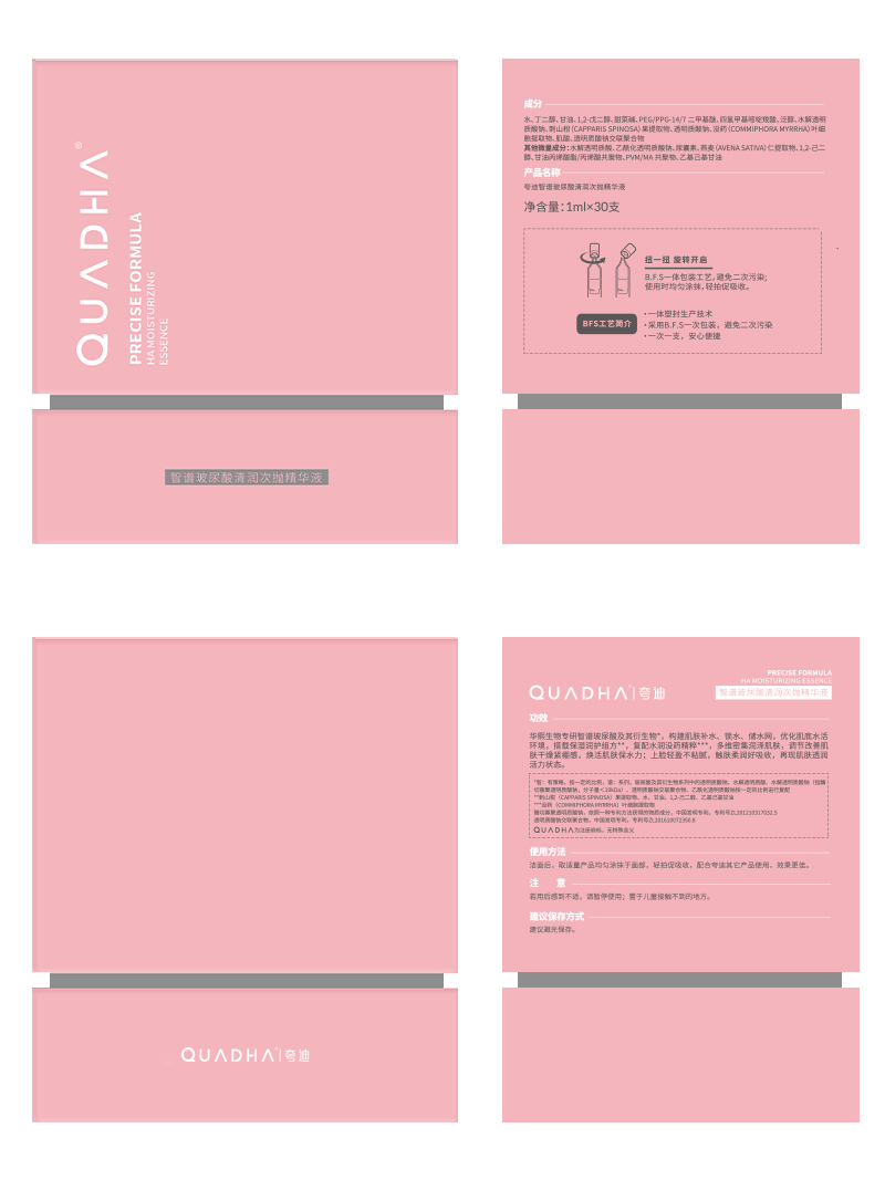 商品名称:QuadHA/夸迪 5D玻尿酸清润次抛保湿软安瓶精华液 1ml/1.5ml 新旧包装随机