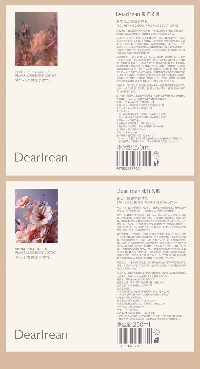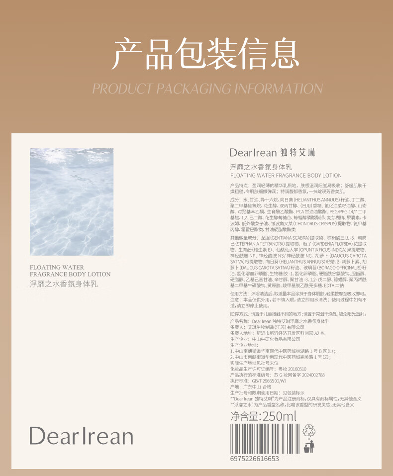 商品名称:Dear Irean/独特艾琳香氛身体乳250ml