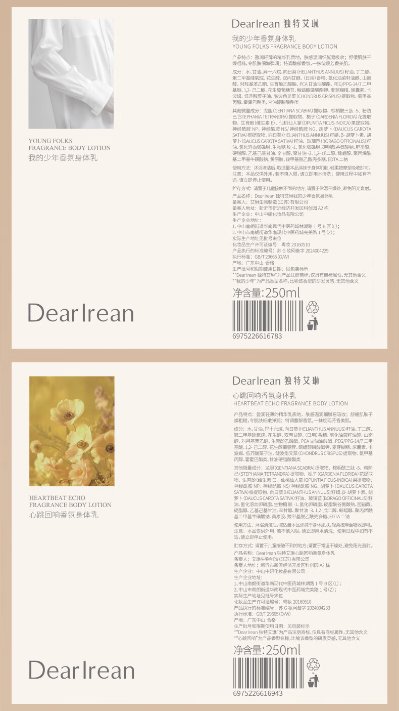 Dear Irean/独特艾琳香氛身体乳250ml