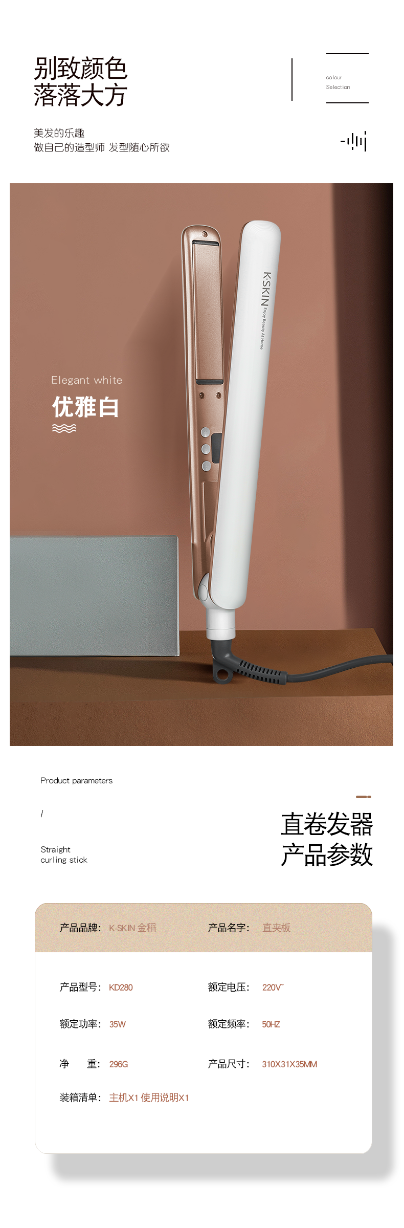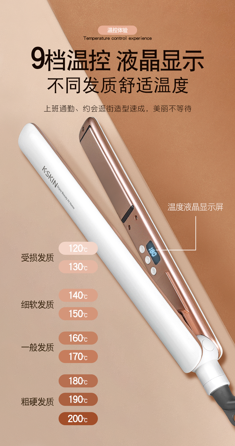 商品名称:K.SKIN/金稻负离子直卷发夹KD280