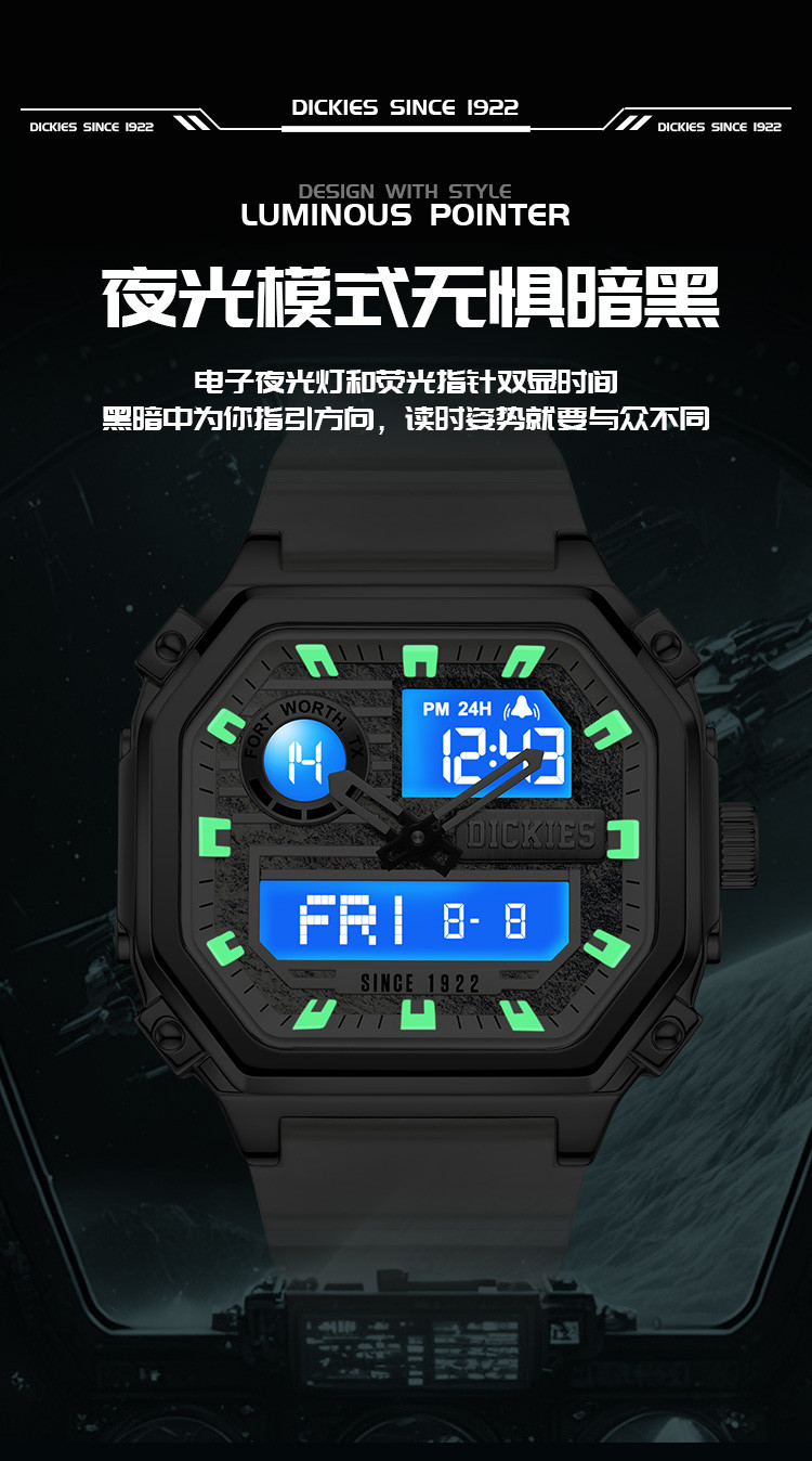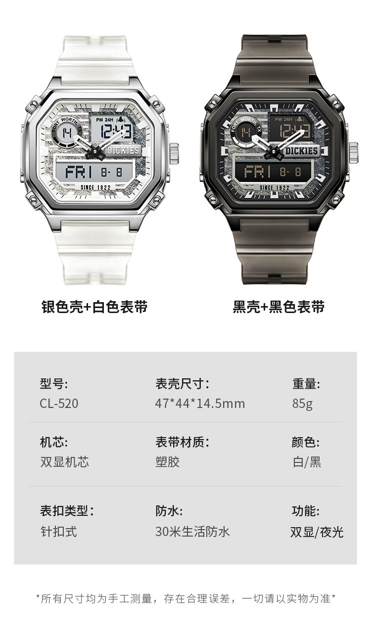 【送礼】手表男小方块高中生女双显夜光防水石英表CL-520 575361