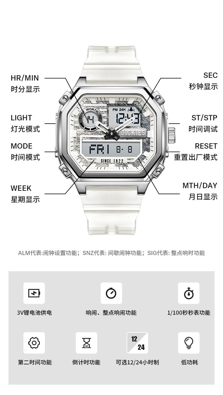 商品名称:【送礼】手表男小方块高中生女双显夜光防水石英表CL-520 575361