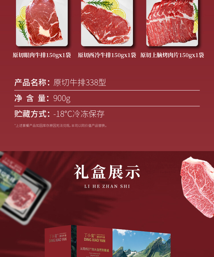 商品名称:【顺丰配送】DINGXIAOYAN/丁小宴原切牛排礼盒338型900g