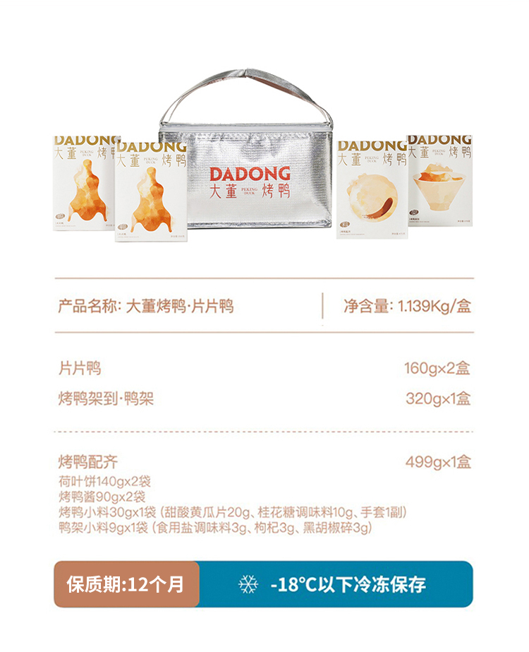 商品名称:DONG TO GO/董到家大董北京烤鸭片片鸭礼盒1139g