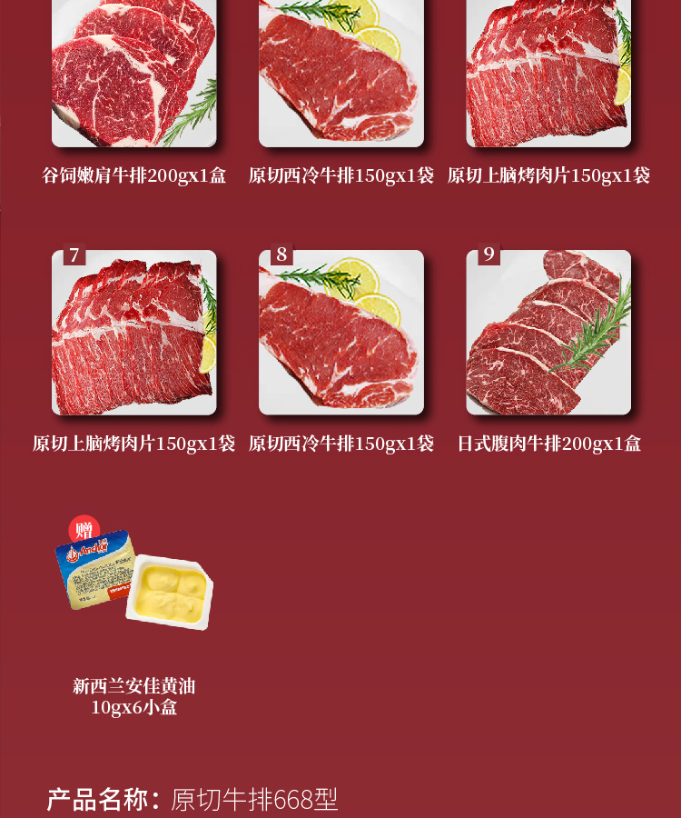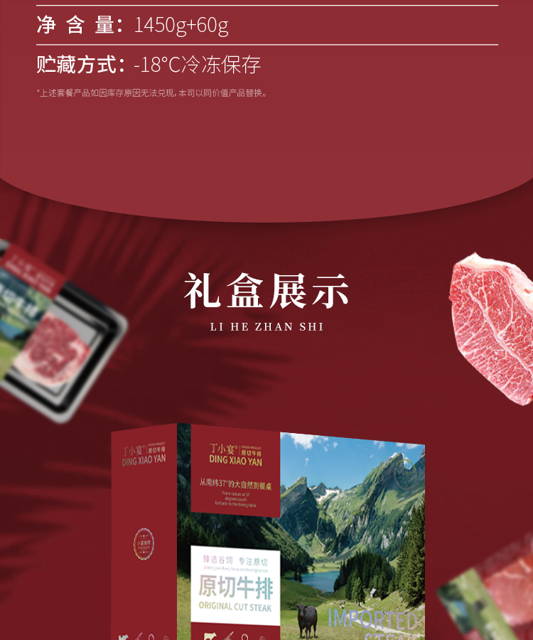 商品名称:【顺丰配送】DINGXIAOYAN/丁小宴原切牛排礼盒668型1450g+60g