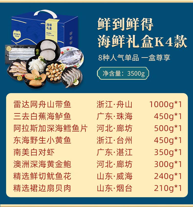商品名称:【京东/顺丰配送】鲜到鲜得海鲜礼盒K4款3500g