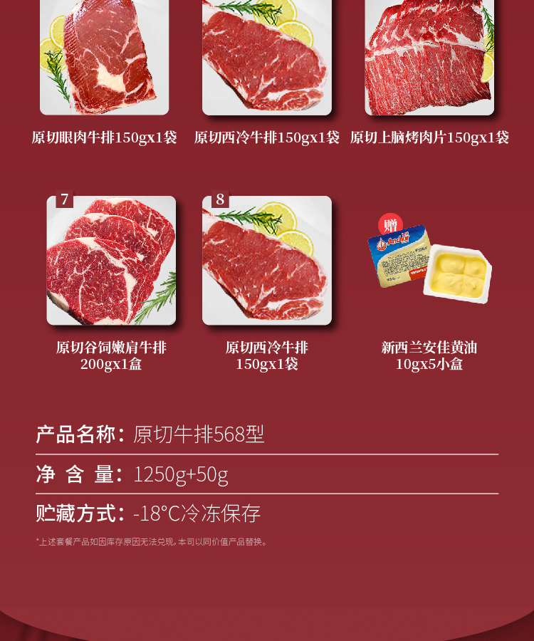 商品名称:【顺丰配送】DINGXIAOYAN/丁小宴原切牛排礼盒568型1250g+50g
