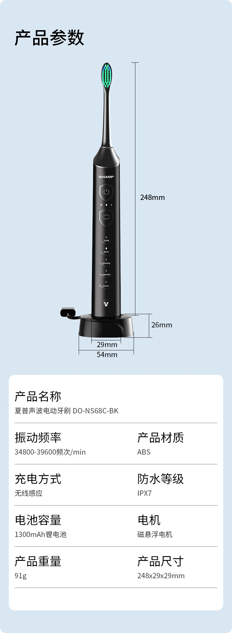 商品名称:SHARP/夏普声波电动牙刷DO-NS68C-BK