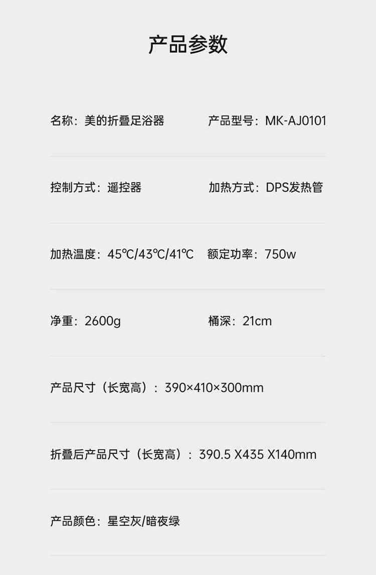商品名称:Midea/美的折叠足浴盆MK-AJ0101