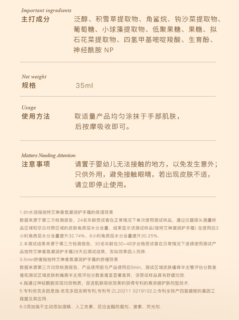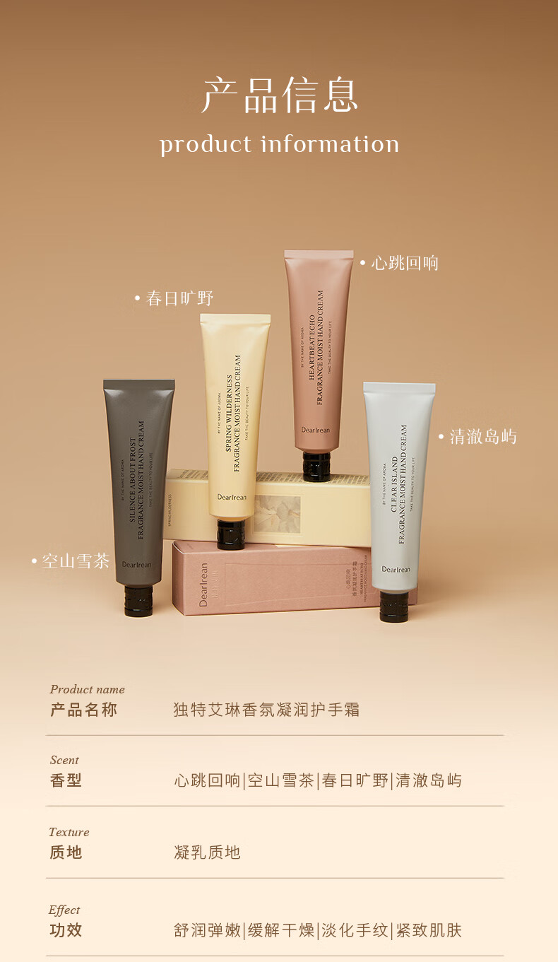 商品名称:Dear Irean/独特艾琳香氛凝润护手霜35ml*2支