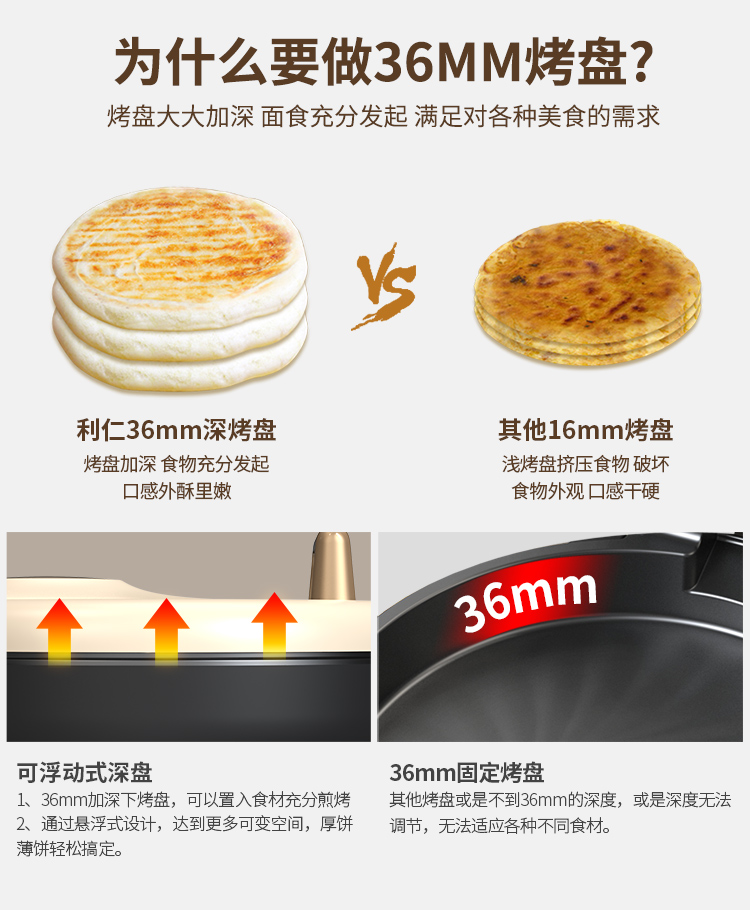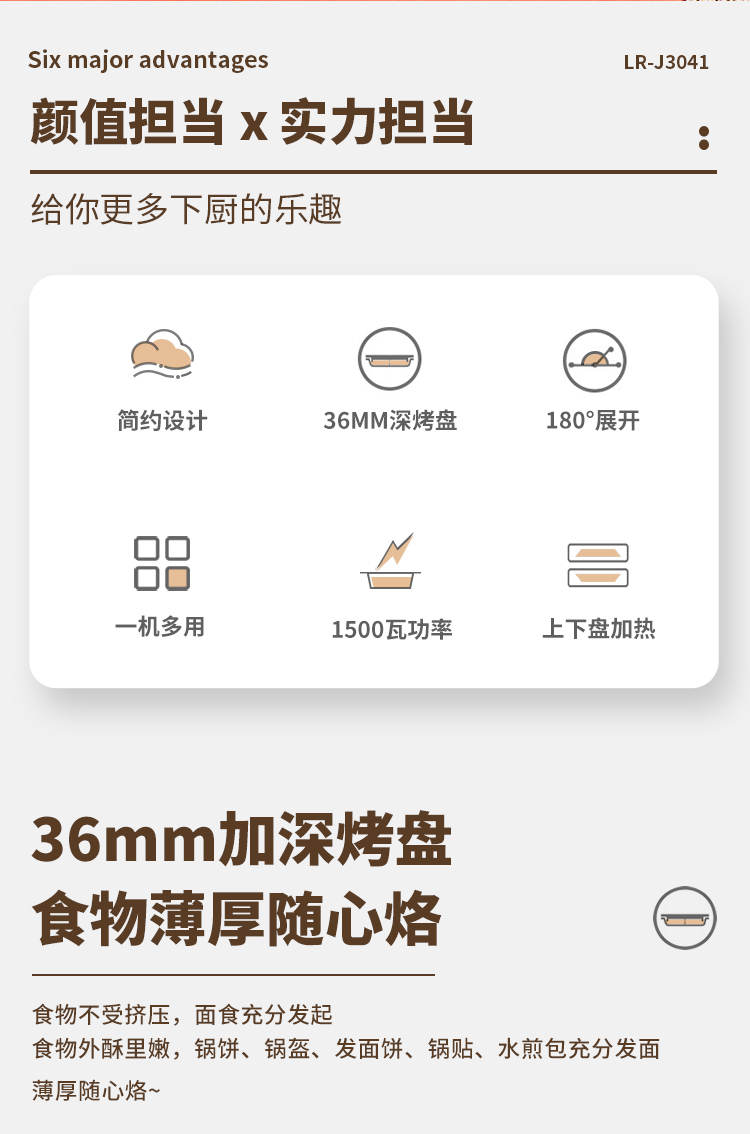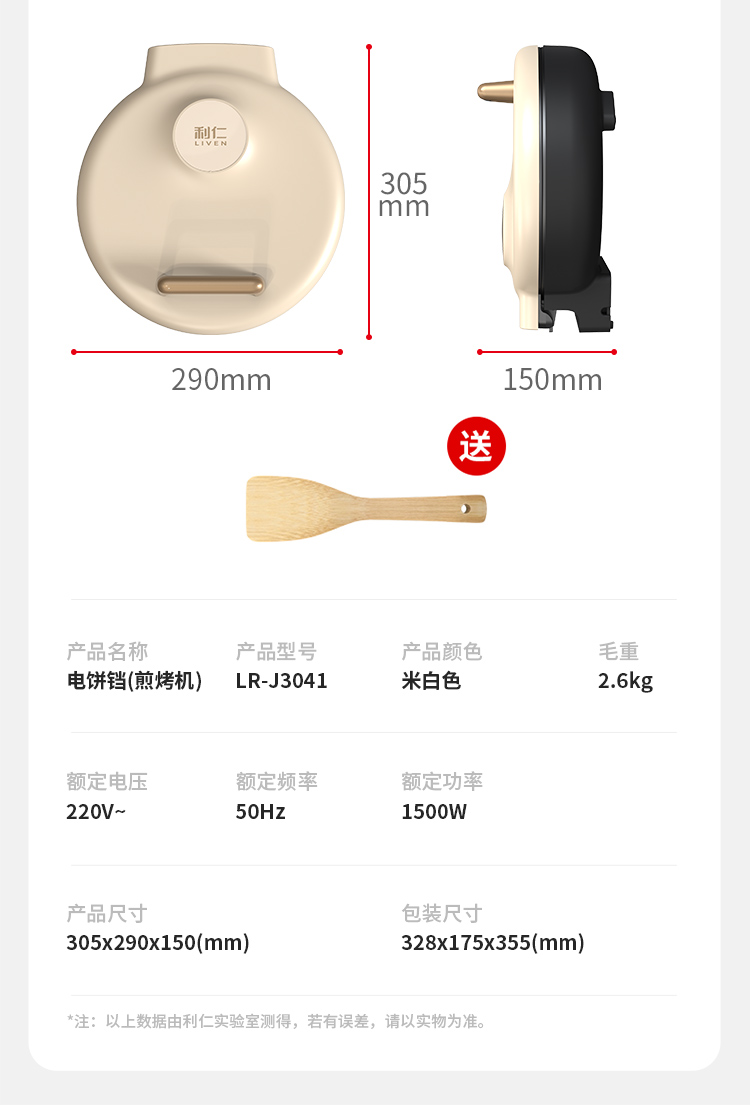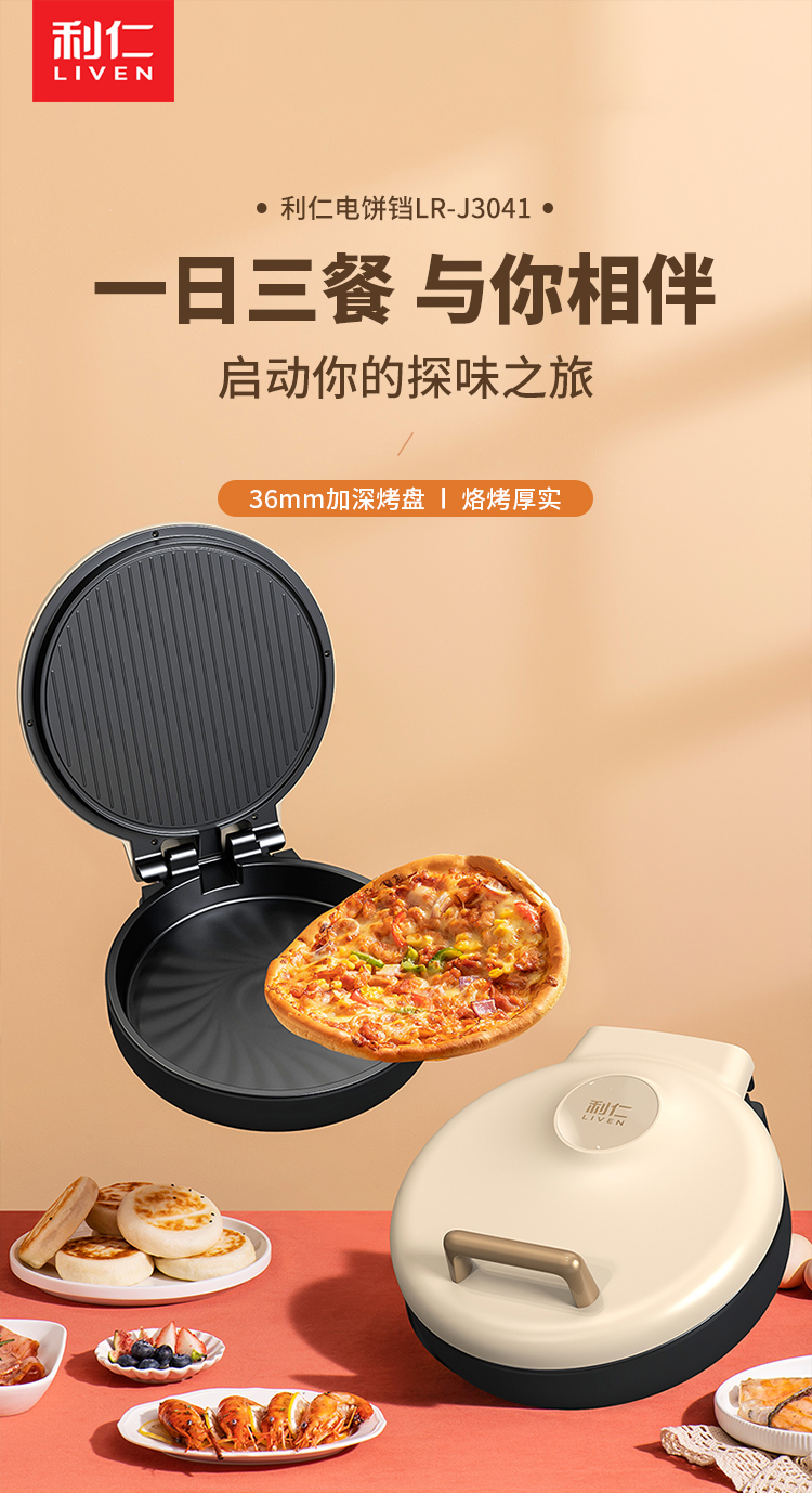 商品名称:Liven/利仁30cm电饼铛-米白色LR-J3041