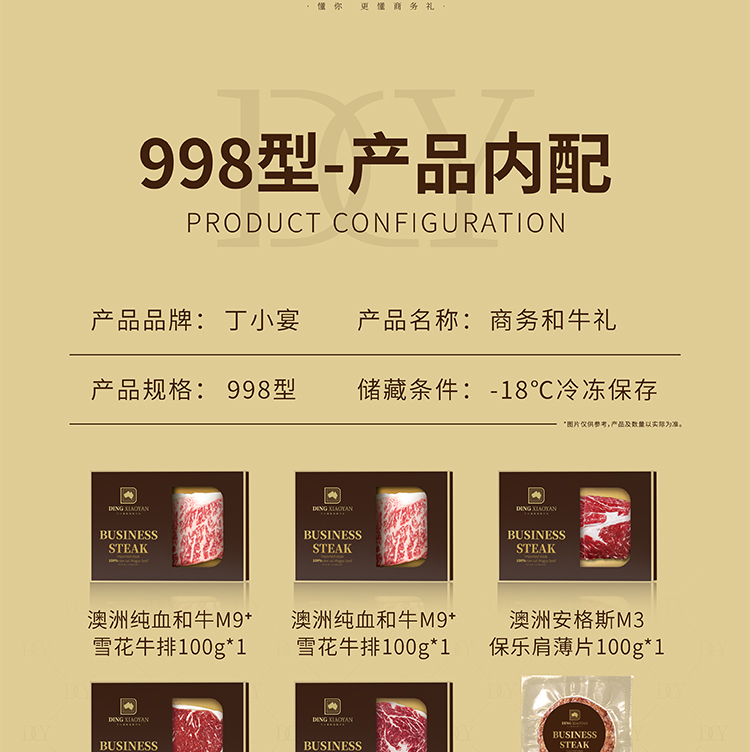 商品名称:【顺丰配送】DINGXIAOYAN/丁小宴澳洲和牛M级商务和牛礼盒998型1500g
