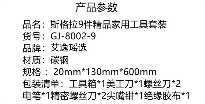 商品名称:艾逸瑶选斯格拉精品家用工具9件套GJ-8002-9