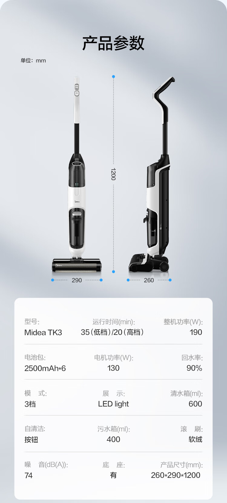 商品名称:Midea/美的无尘感家用洗地机TK3