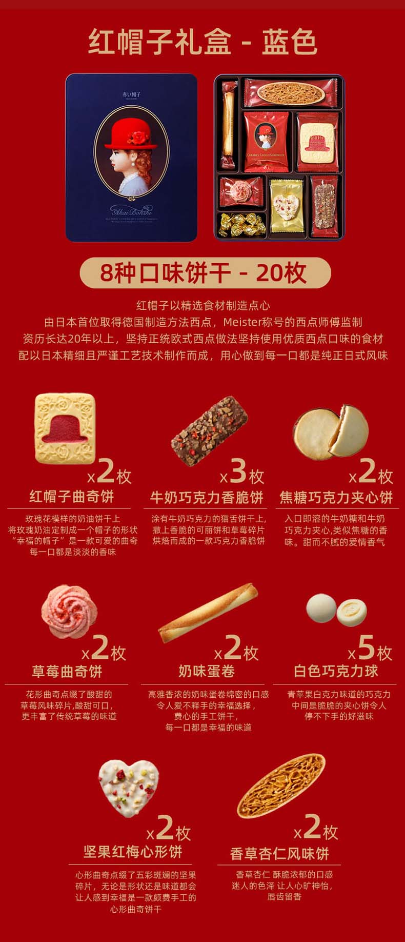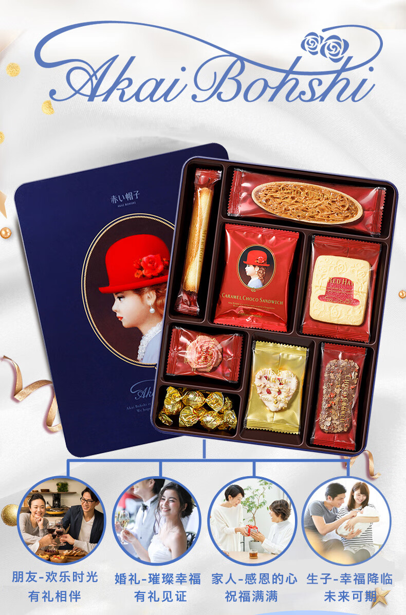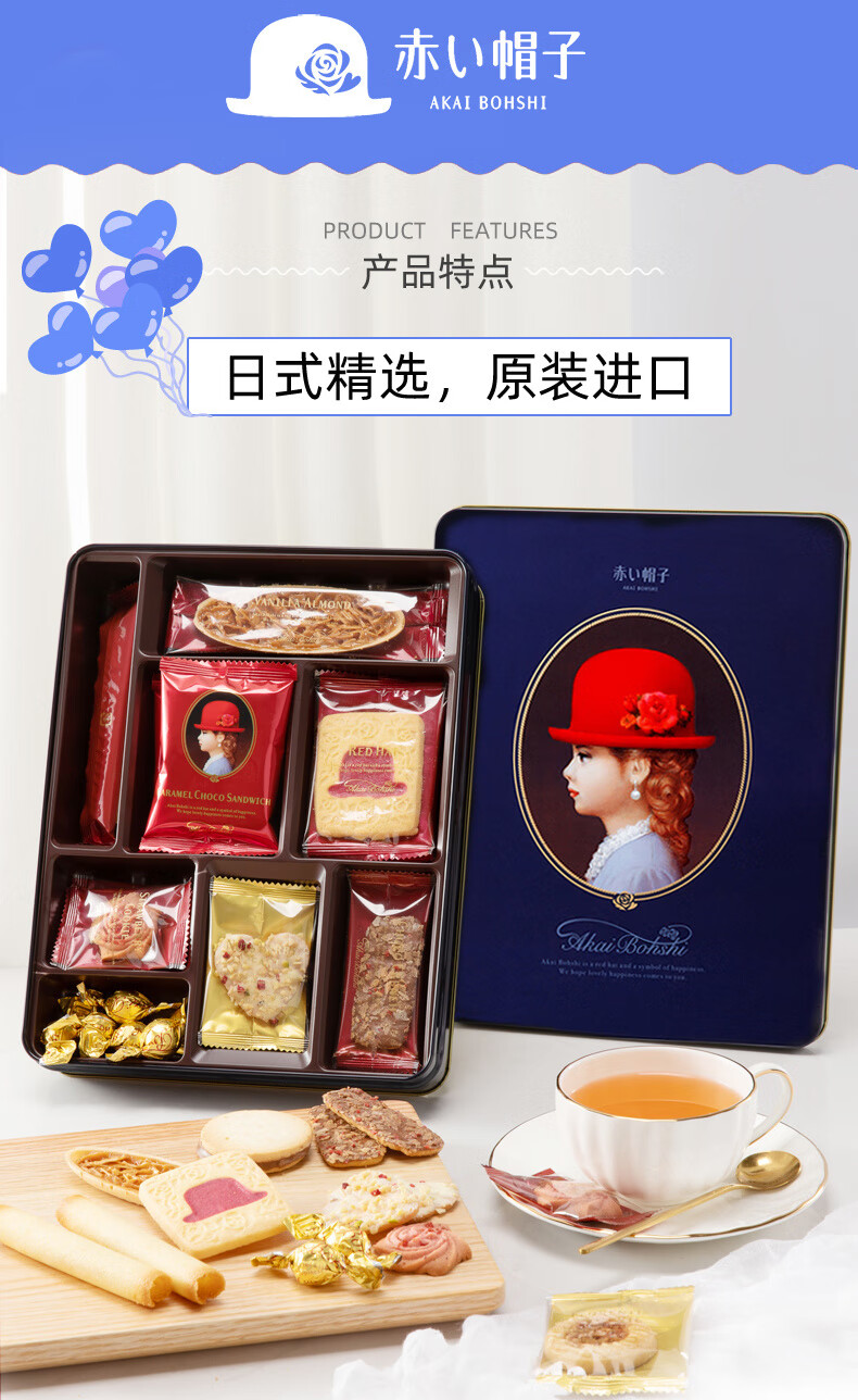 【京东/德邦配送】红帽子日本进口糕点礼盒-蓝色款168.6g