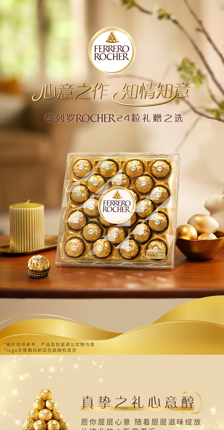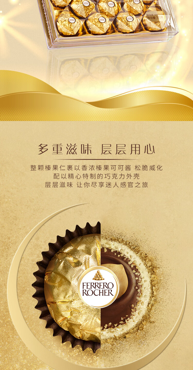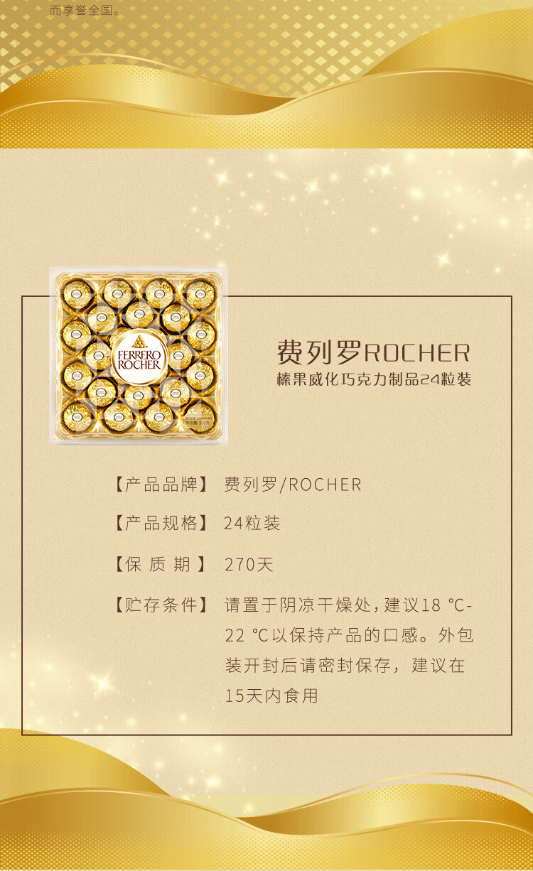 商品名称:【京东/德邦配送】FERRERO ROCHER/费列罗榛果威化巧克力24粒300g