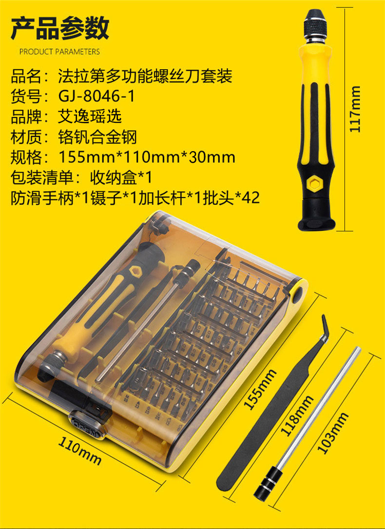 商品名称:艾逸瑶选法拉第多功能螺丝刀套装GJ-8046-1