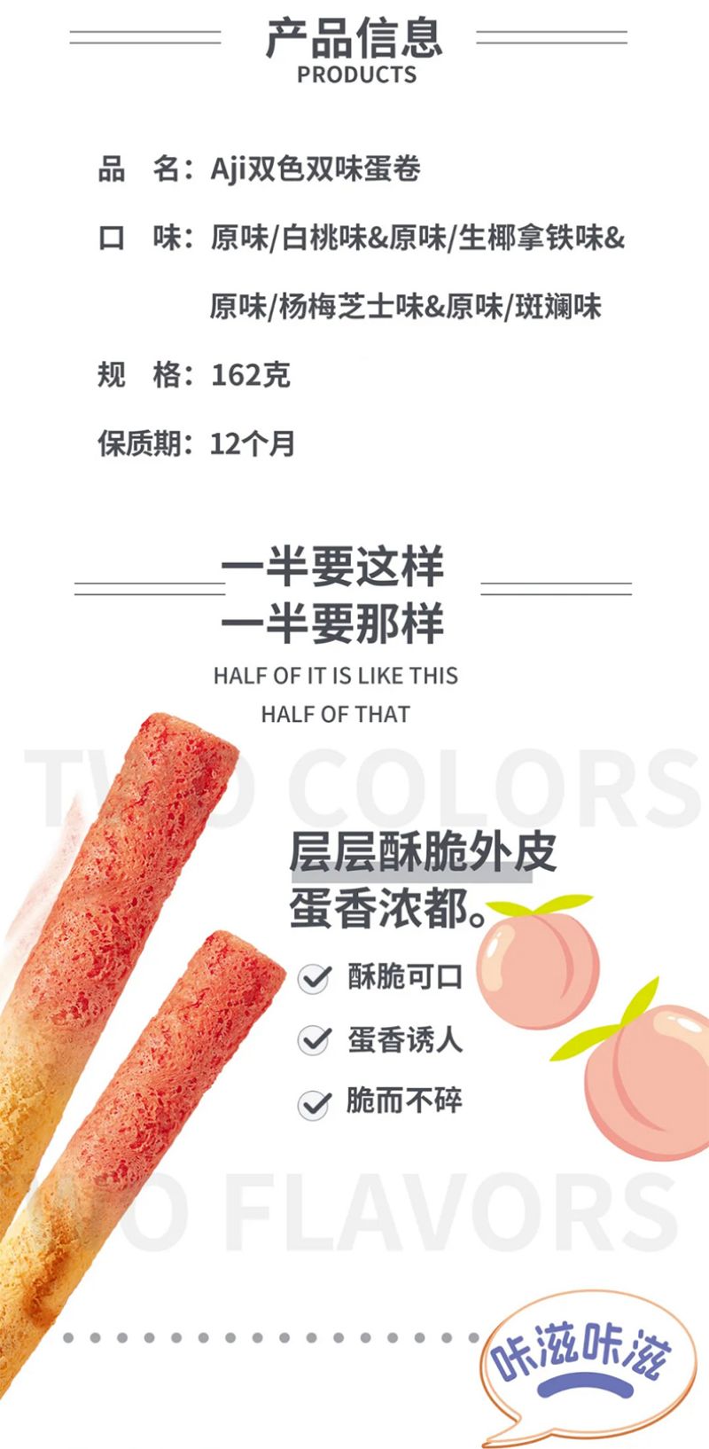 双色双味蛋卷(原味/白桃味)162g*4盒