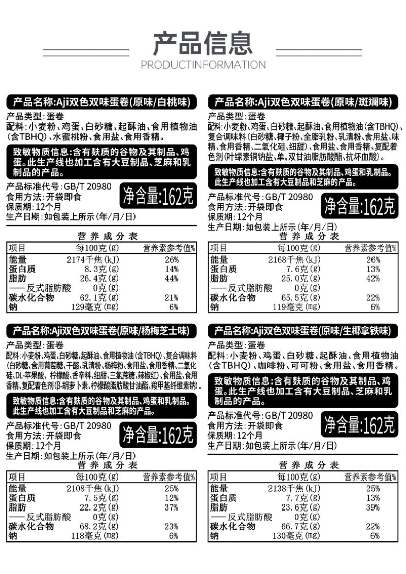 商品名称:Aji双色双味蛋卷162g*4盒