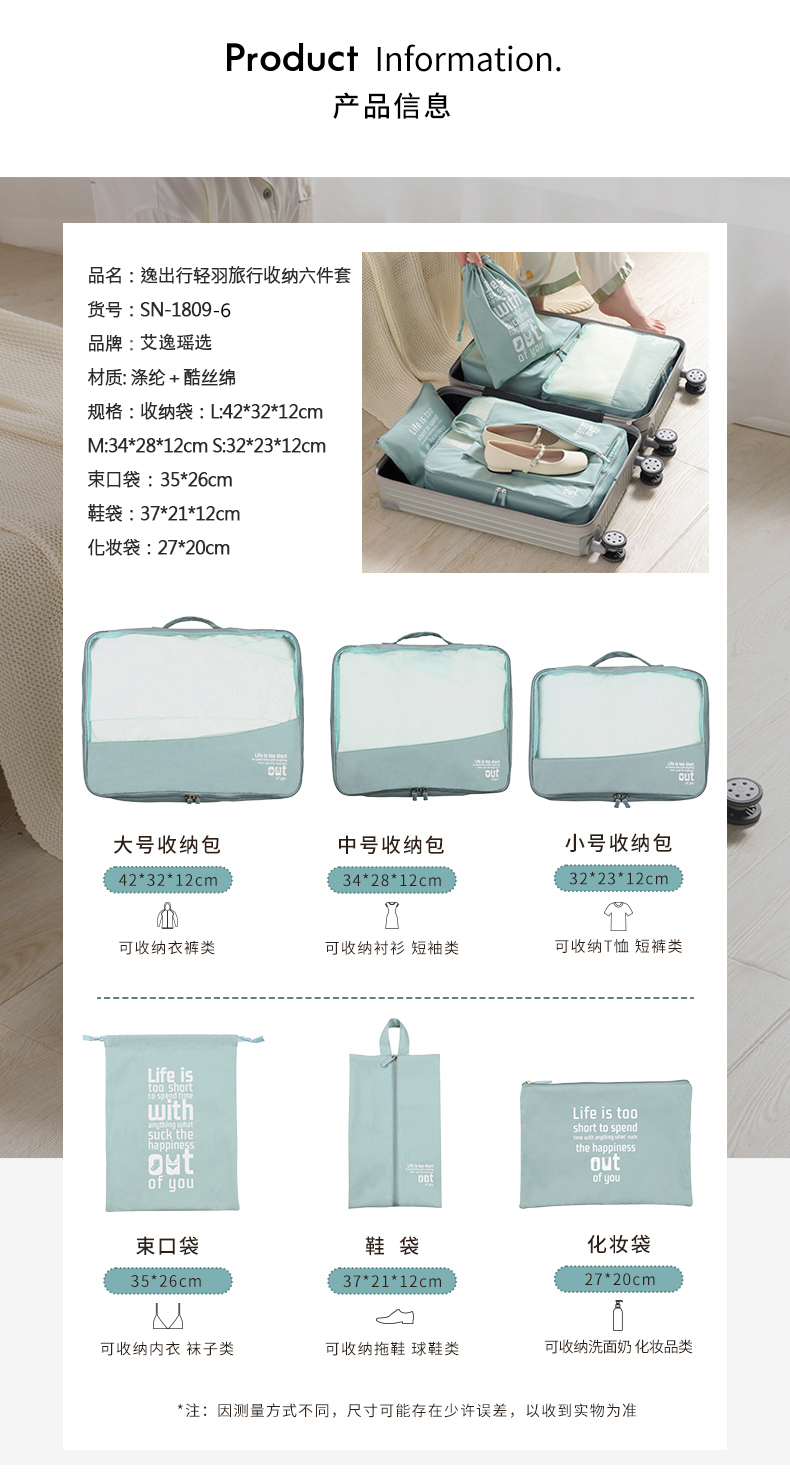 商品名称:艾逸瑶选逸出行轻羽旅行收纳六件套SN-1809-6