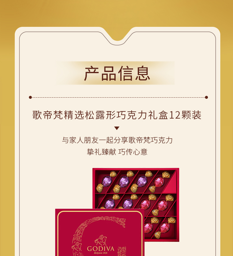 商品名称:【京东/德邦配送】GODIVA/歌帝梵精选松露形巧克力礼盒12颗120g
