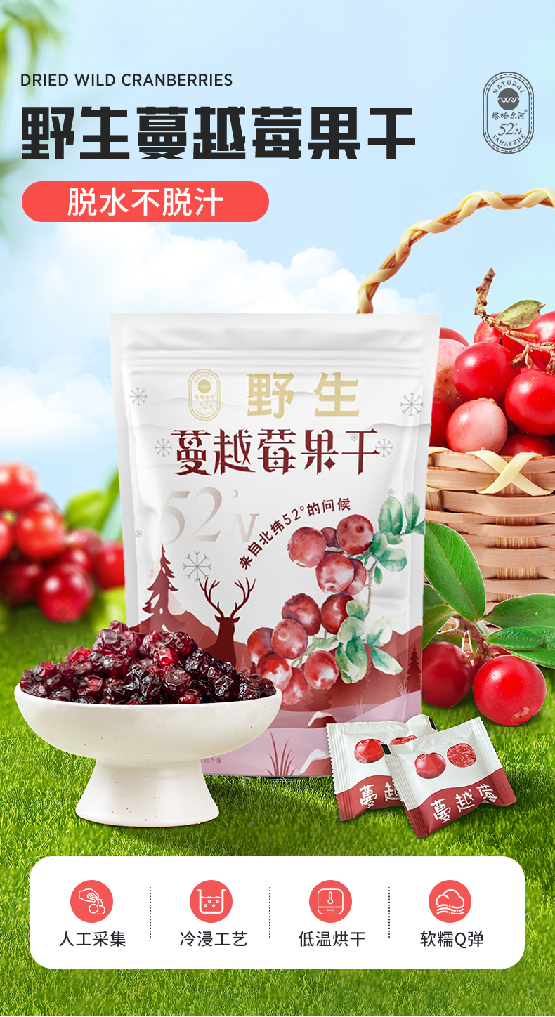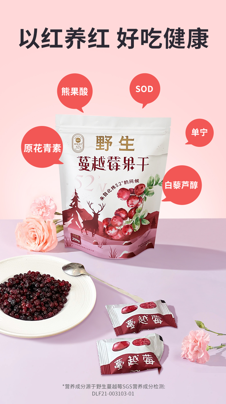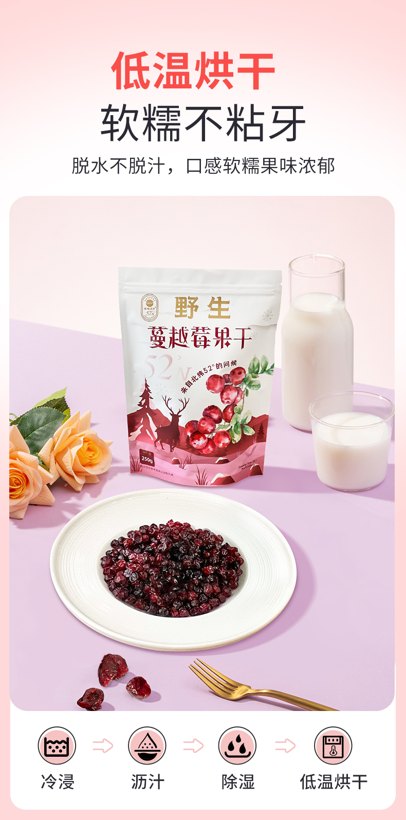 商品名称:塔哈尔河野生蔓越莓果干250g*2袋