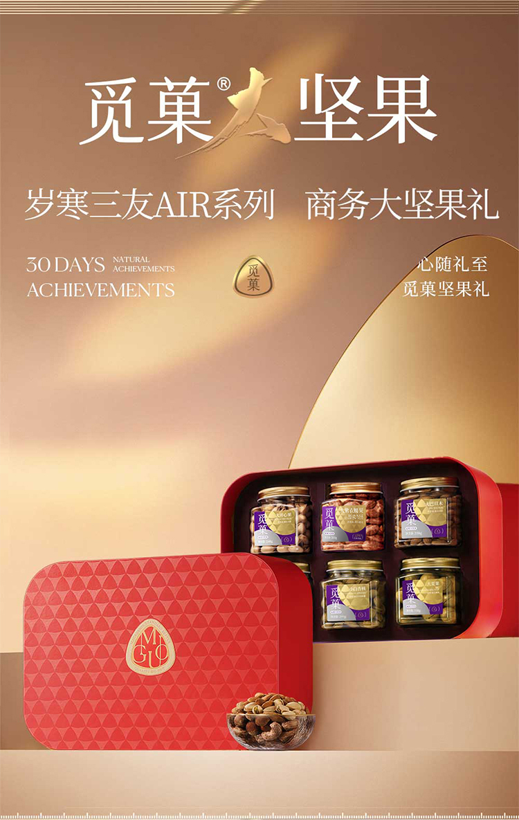 【京东/德邦配送】觅菓红色款岁寒三友AIR坚果礼盒1469g