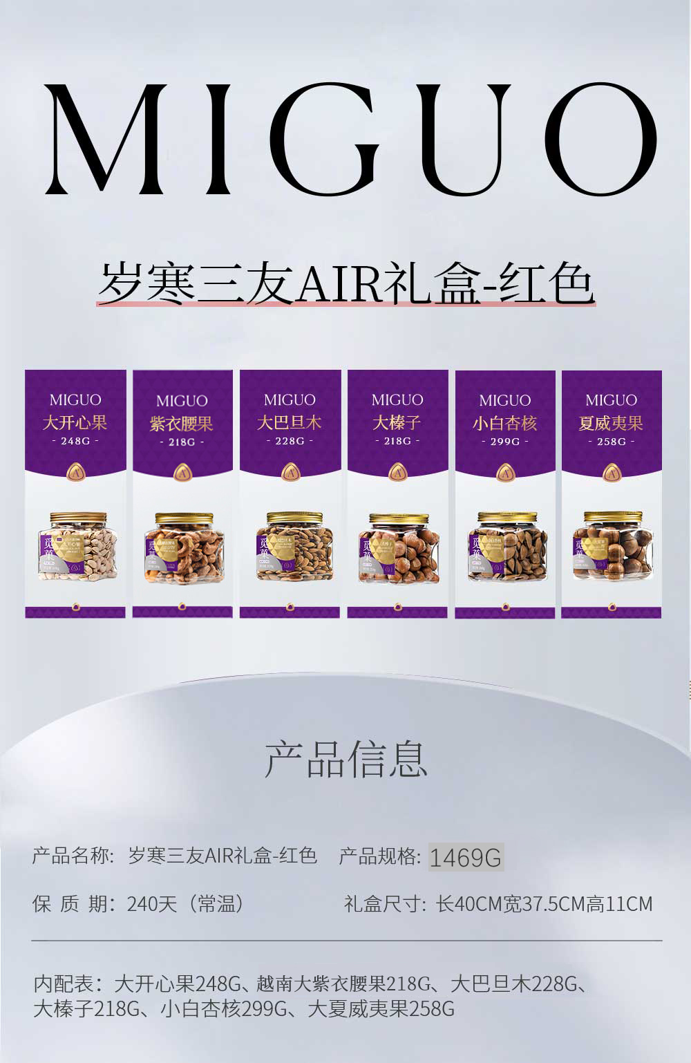商品名称:【京东/德邦配送】觅菓红色款岁寒三友AIR坚果礼盒1469g