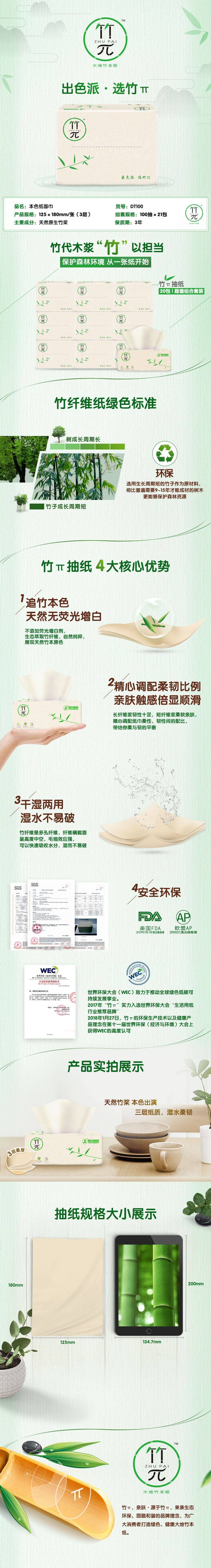 商品名称:心相印竹π三层塑装面巾抽纸整箱100抽*21包DT100