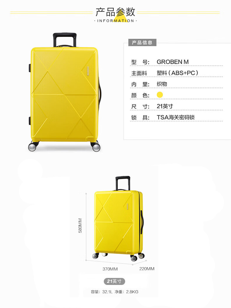 商品名称:American Tourister/美旅21英寸GROBEN M系列四轮拉杆箱TY4*06001