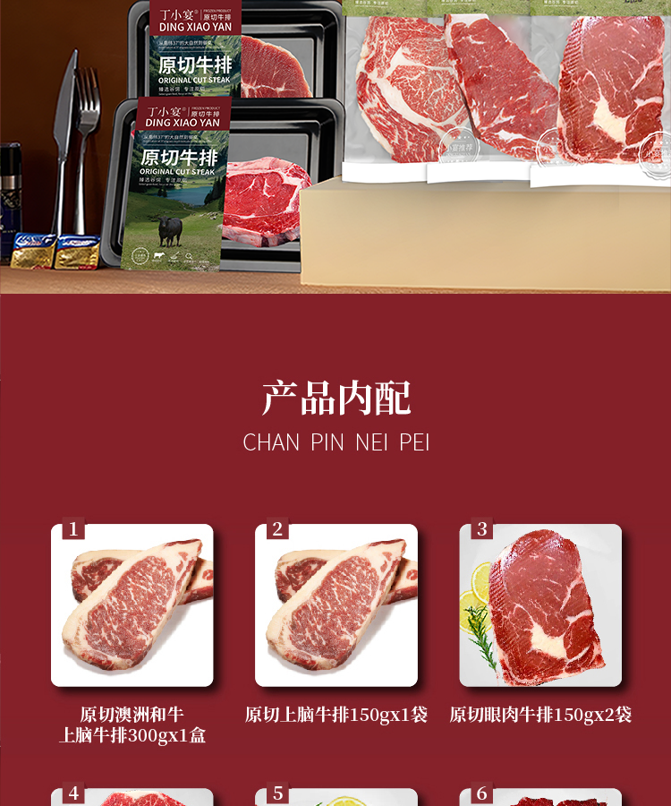 商品名称:【顺丰配送】DINGXIAOYAN/丁小宴原切牛排礼盒898型1800g+70g