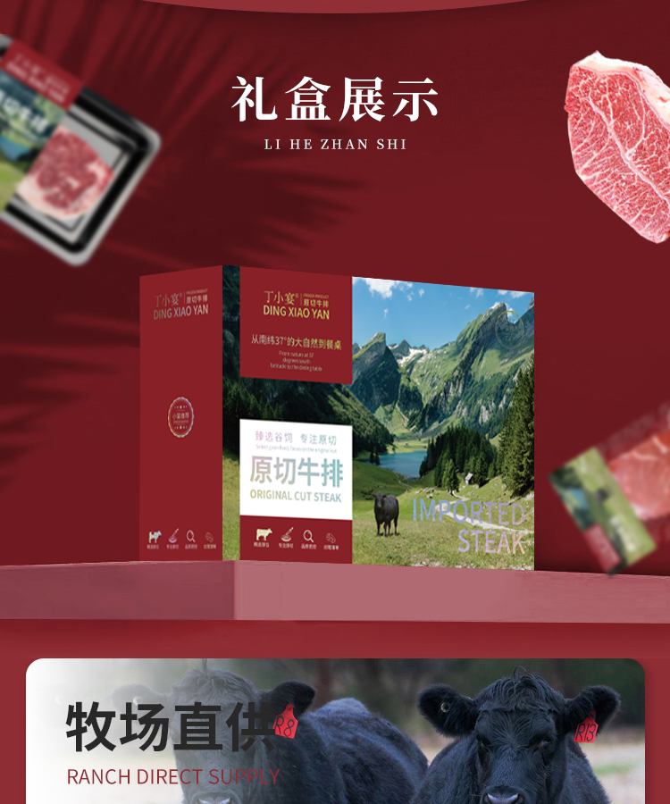 【顺丰配送】DINGXIAOYAN/丁小宴原切牛排礼盒898型1800g+70g