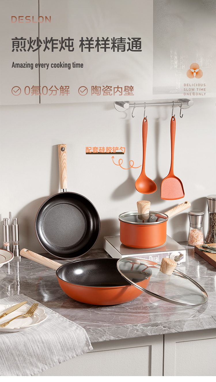 DESLON/德世朗鸿运0氟陶瓷不粘五件套DFS-TZ939-5A