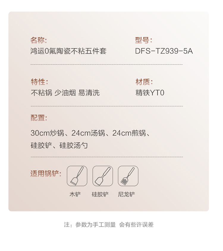 商品名称:DESLON/德世朗鸿运0氟陶瓷不粘五件套DFS-TZ939-5A