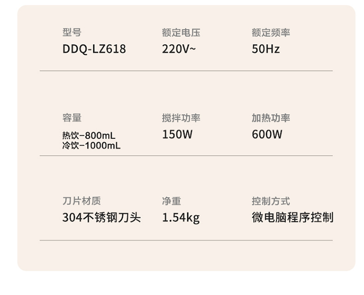 商品名称:DESLON/德世朗1升破壁豆浆机DDQ-LZ618