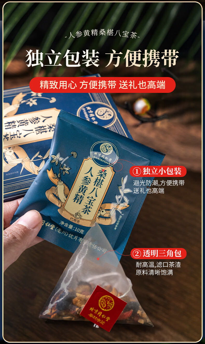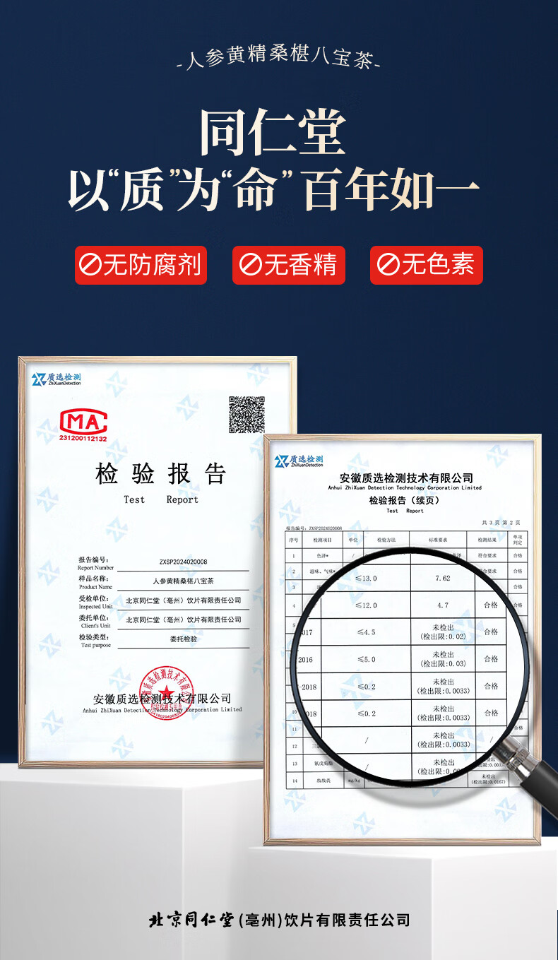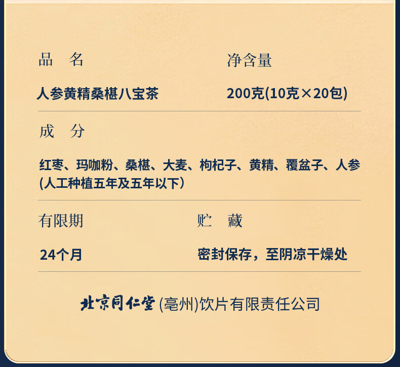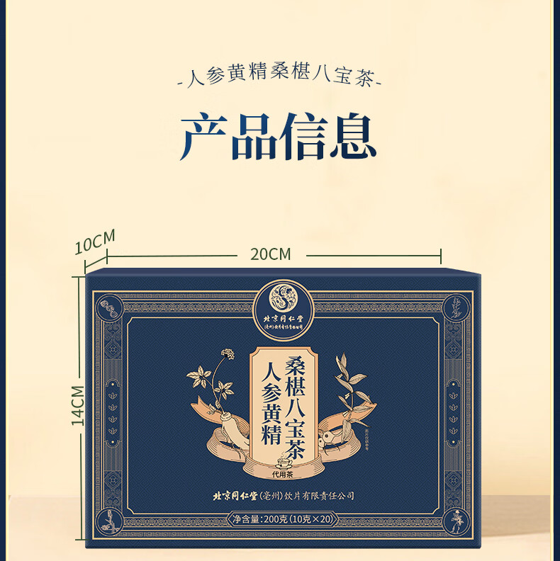 商品名称:北京同仁堂人参黄精桑椹八宝茶200g