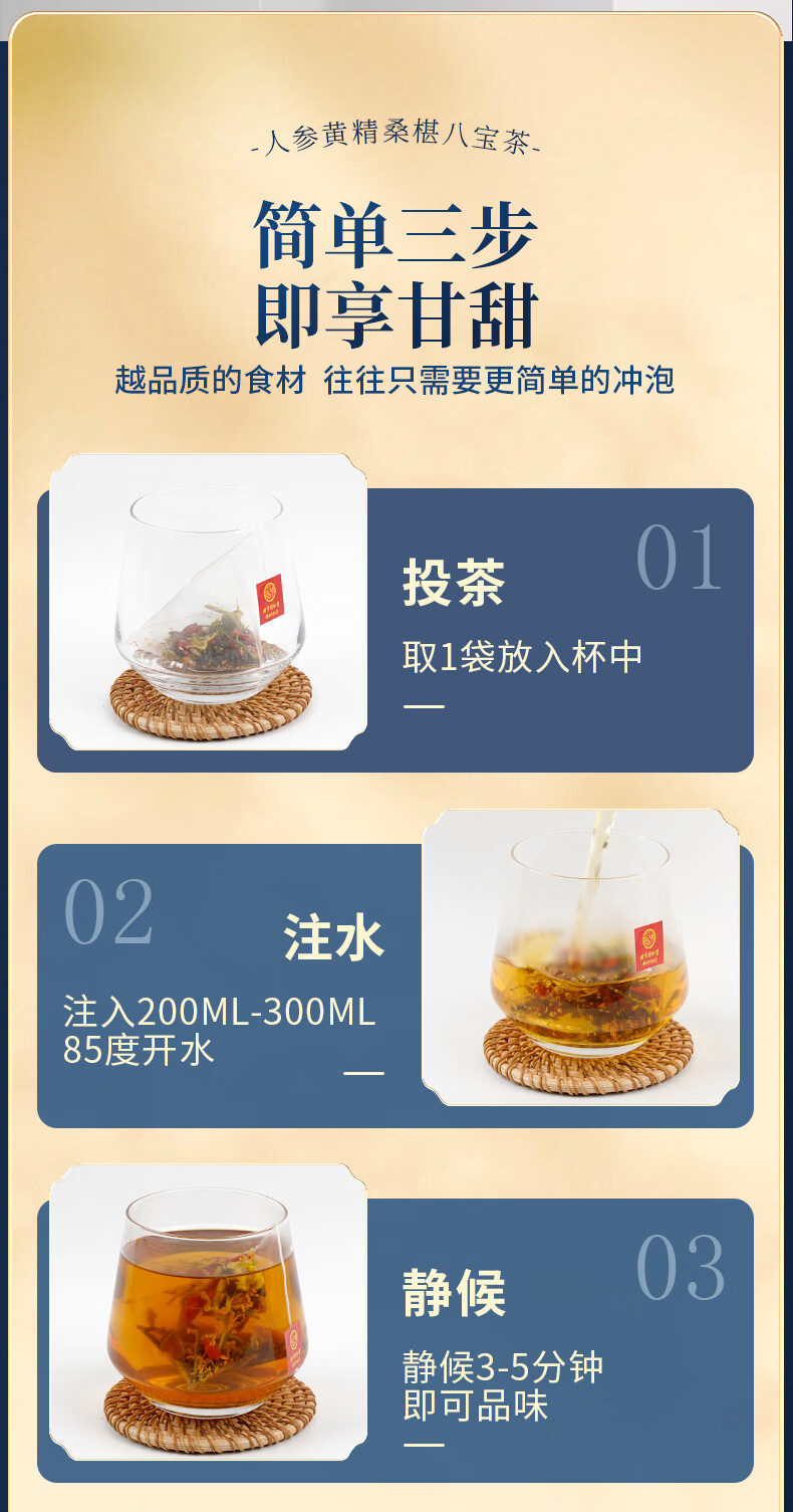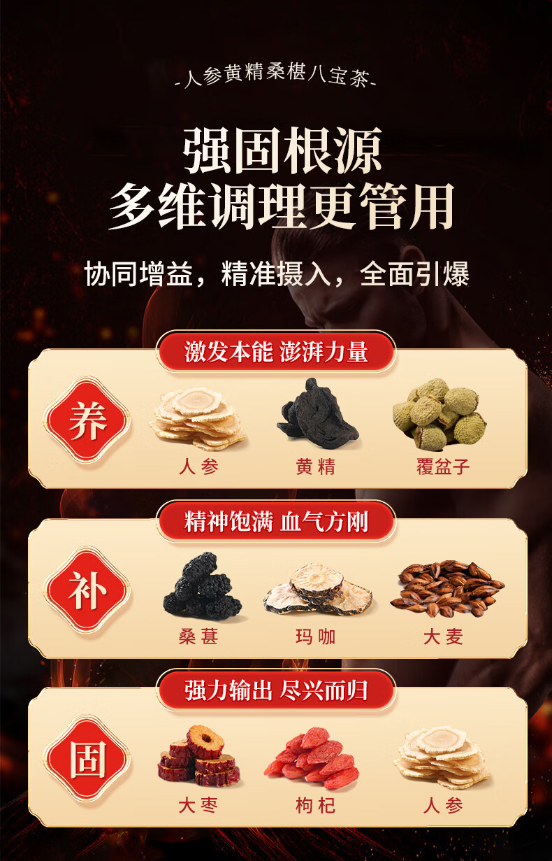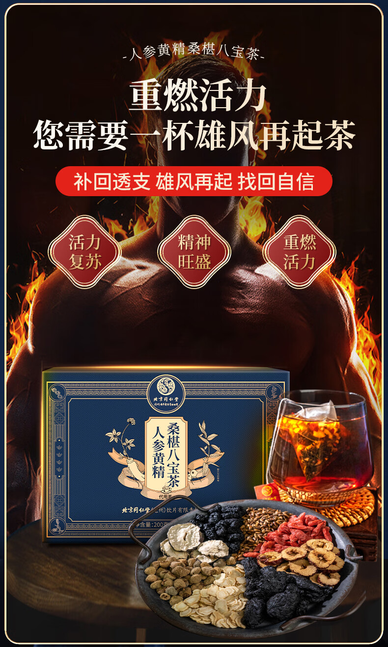 商品名称:北京同仁堂人参黄精桑椹八宝茶200g
