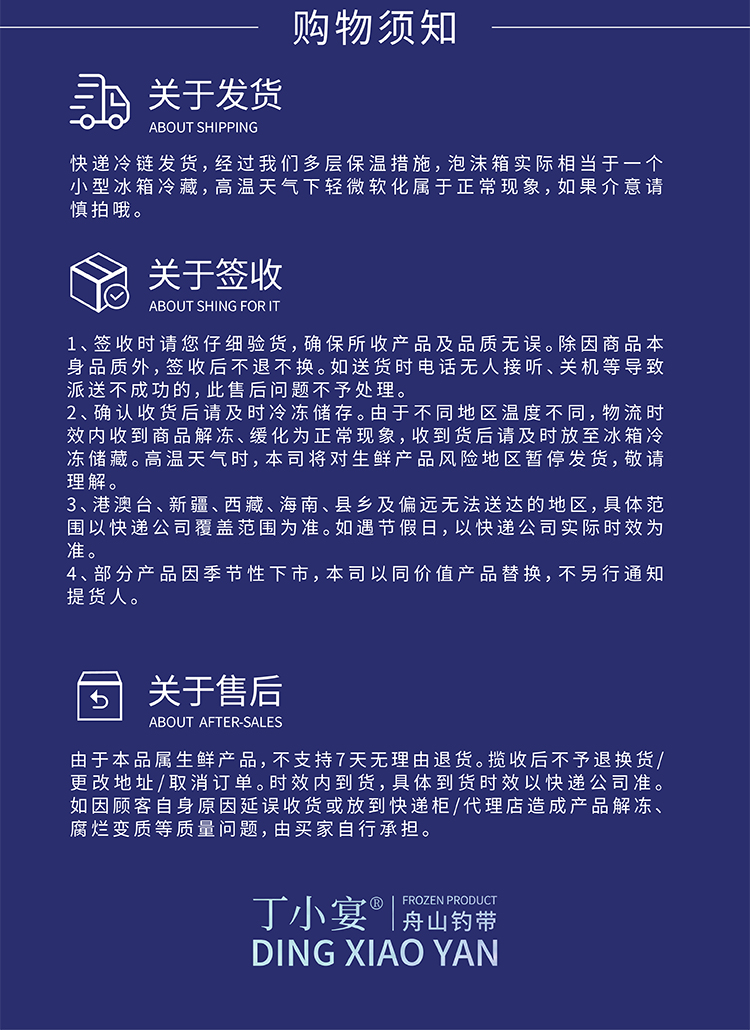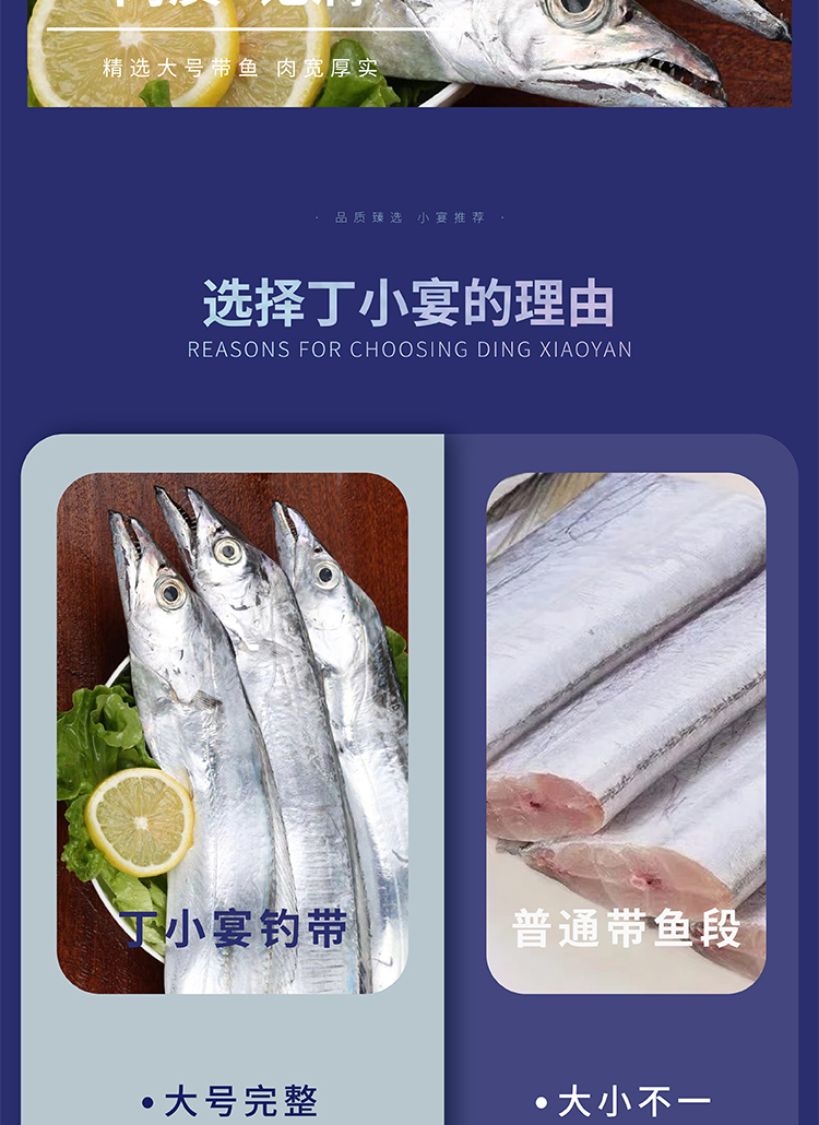 商品名称:【顺丰配送】DINGXIAOYAN/丁小宴舟山野生钓带冷冻带鱼568型约2000g