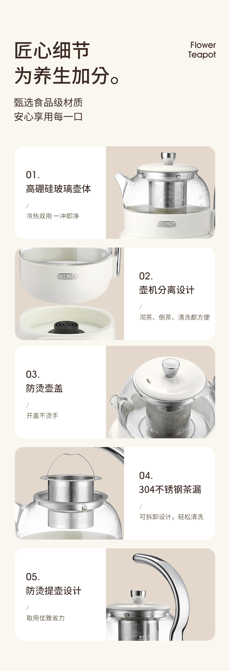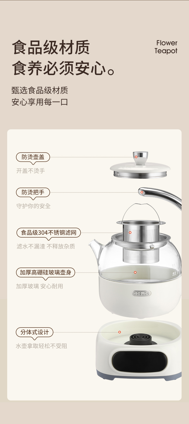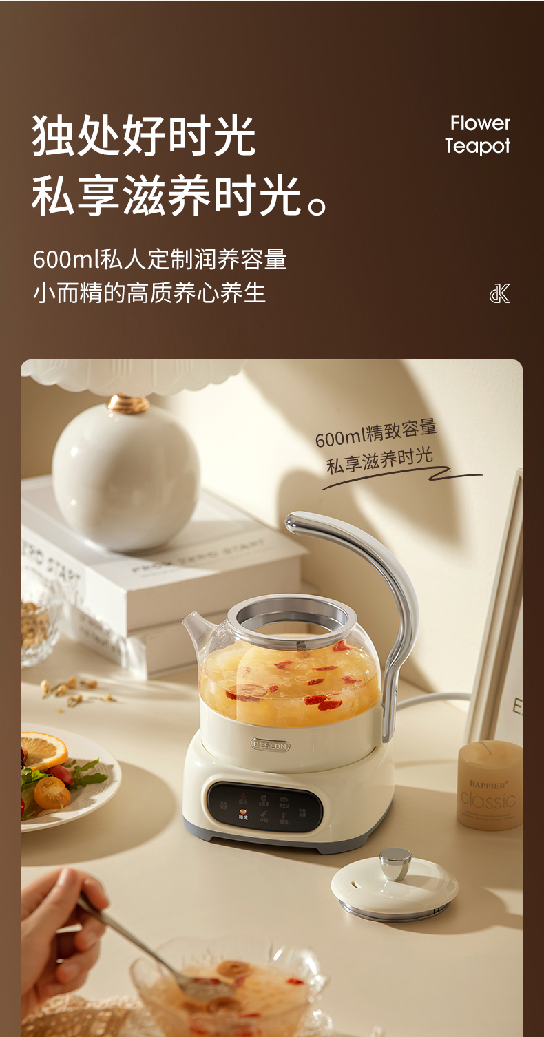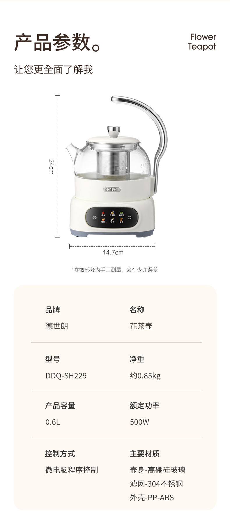 商品名称:DESLON/德世朗0.6升花茶壶DDQ-SH229