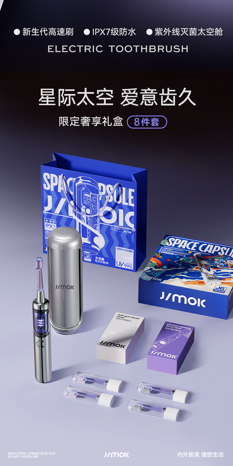 【京东/顺丰配送】JIMOK/锦美客太空舱电动牙刷星际礼盒J6pro
