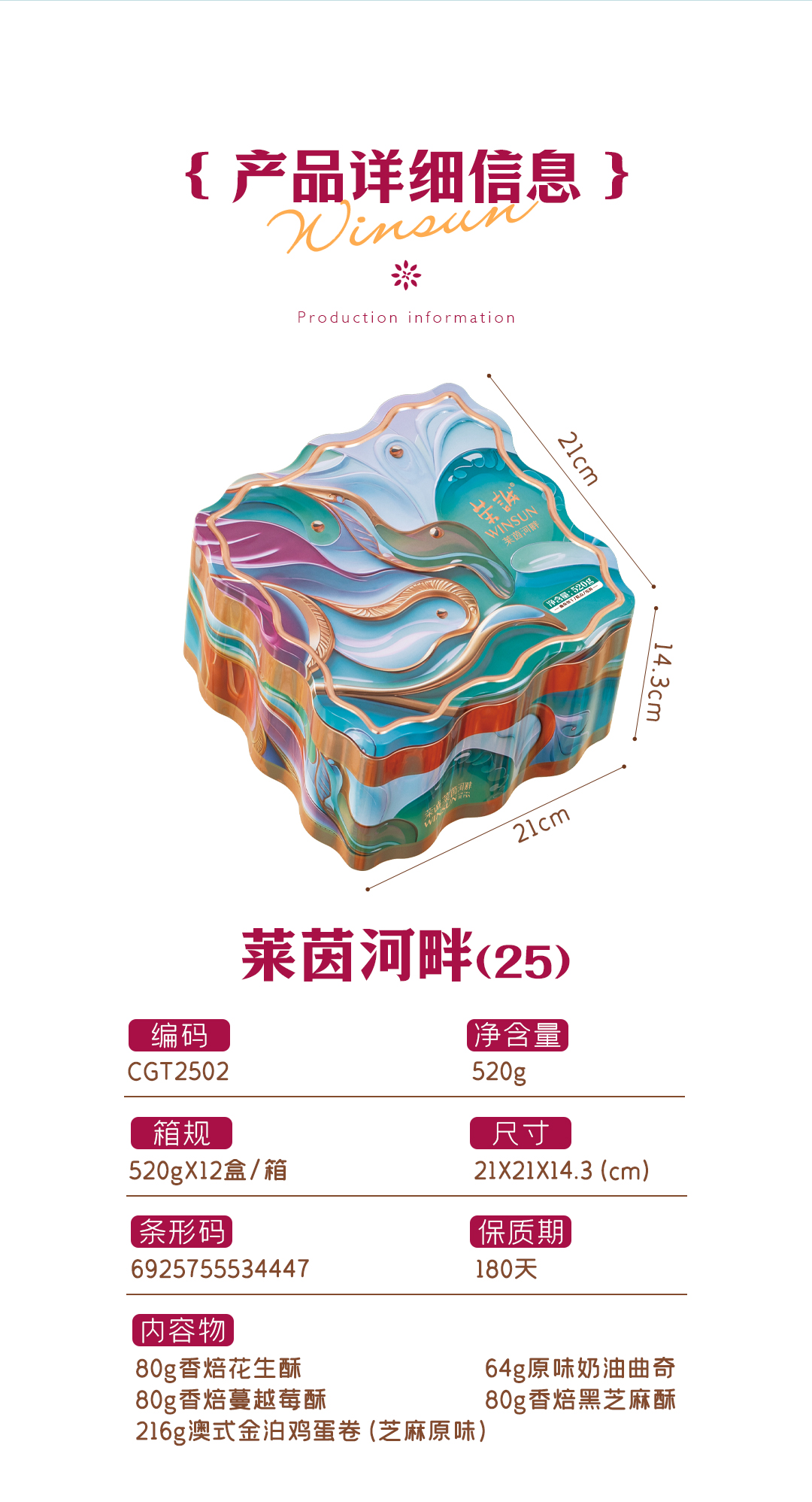 商品名称:WINSUN/荣诚莱茵河畔糕点礼盒520g