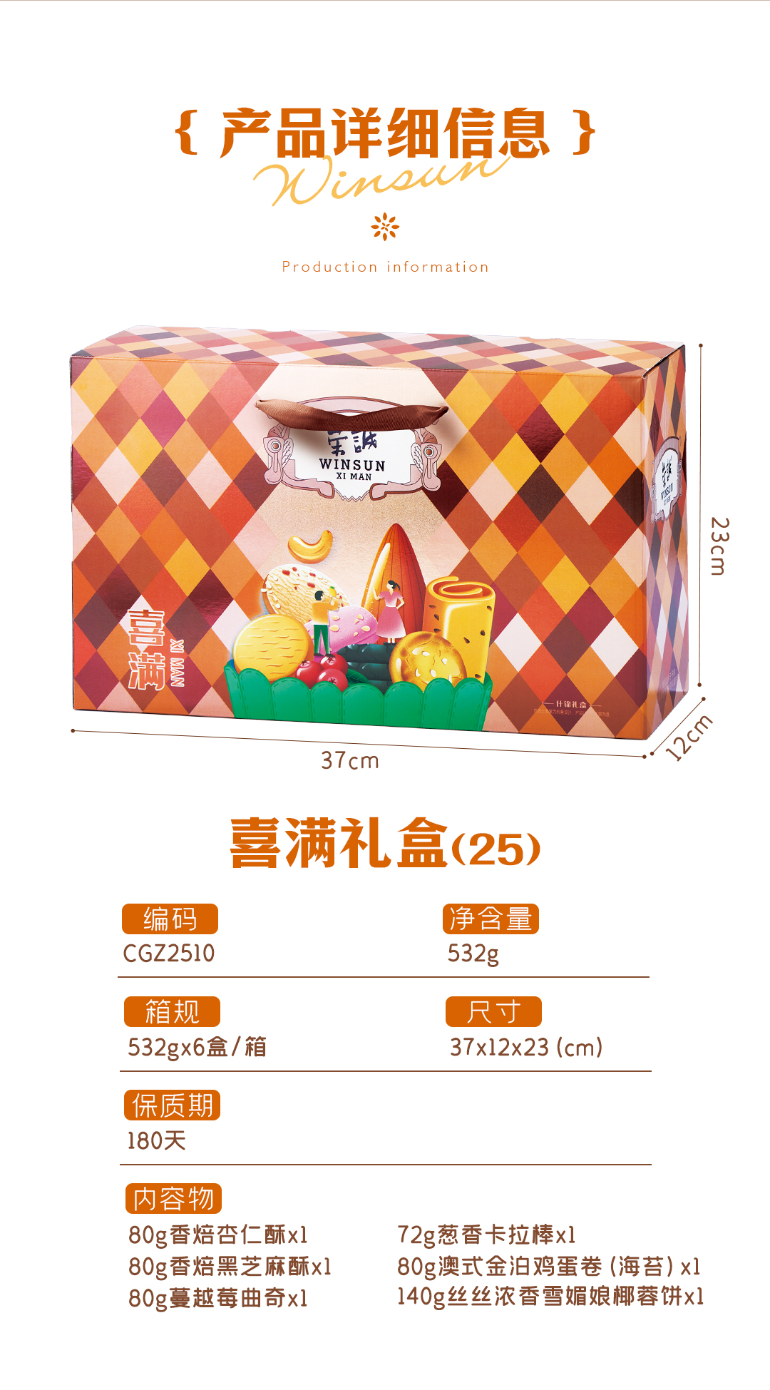 商品名称:WINSUN/荣诚喜满糕点礼盒532g