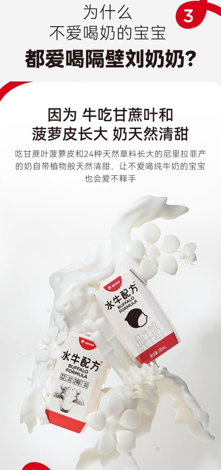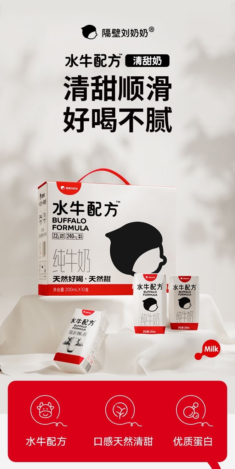 商品名称:隔壁刘奶奶水牛配方清甜版纯牛奶200ml*10盒*2箱