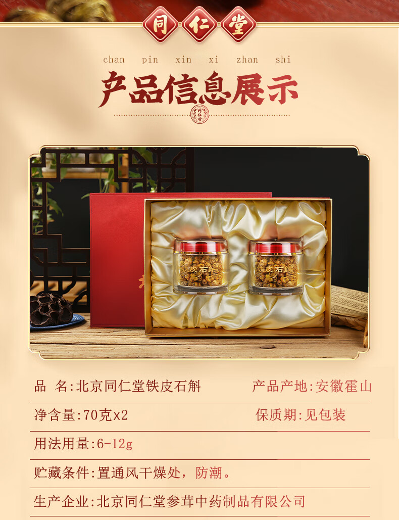 商品名称:北京同仁堂铁皮石斛礼盒140g 新老包装随机不接受指定
