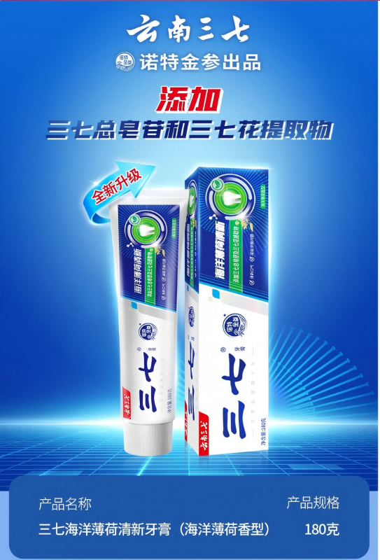商品名称:云南三七海洋薄荷清新牙膏180g