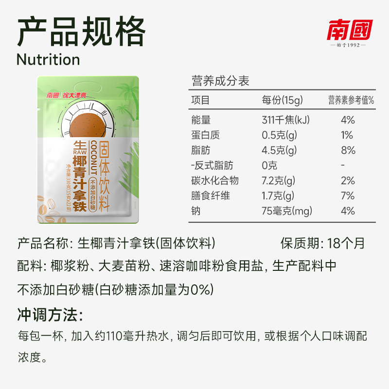 商品名称:南国生椰青汁拿铁固体饮料330g