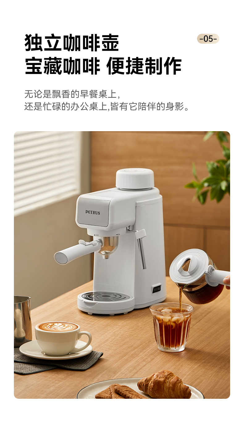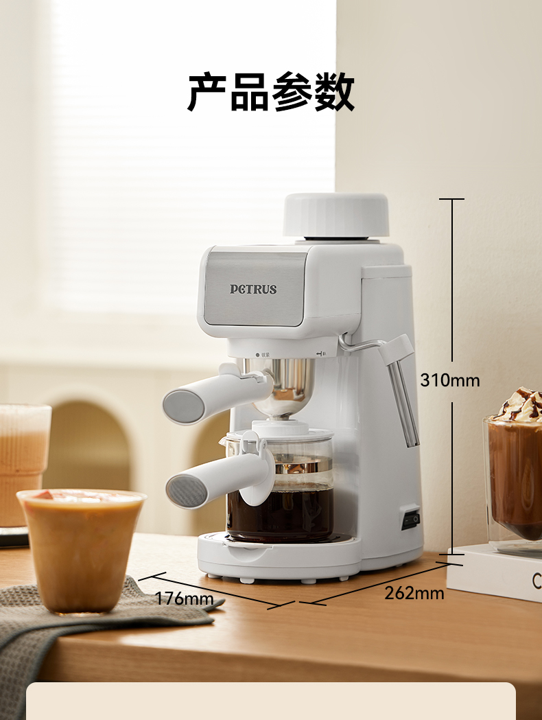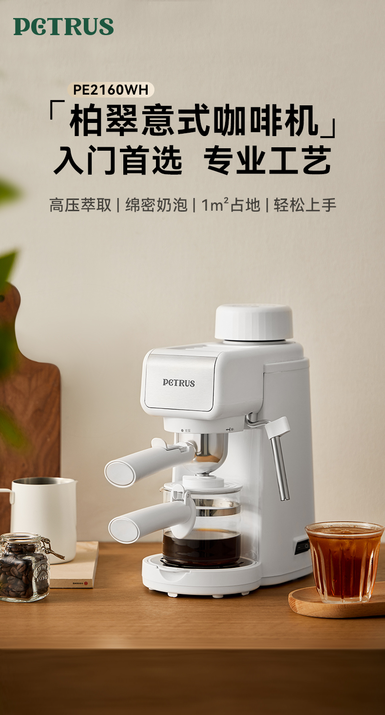 商品名称:petrus/柏翠咖啡机-白色PE2160WH